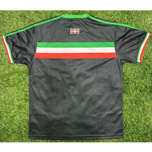 Poliéster 100 % MicroMesh altamente transpirable, rayas, escudo y bandera trasera bordada.