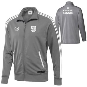Escudos y rayas bordadas, bolsillos con cremallera. En la parte trasera, a la altura del cuello lleva bordado un arrano blanco a modo de detalle.